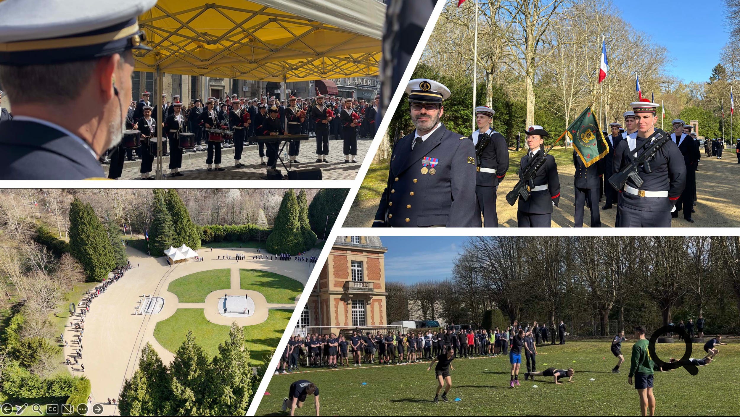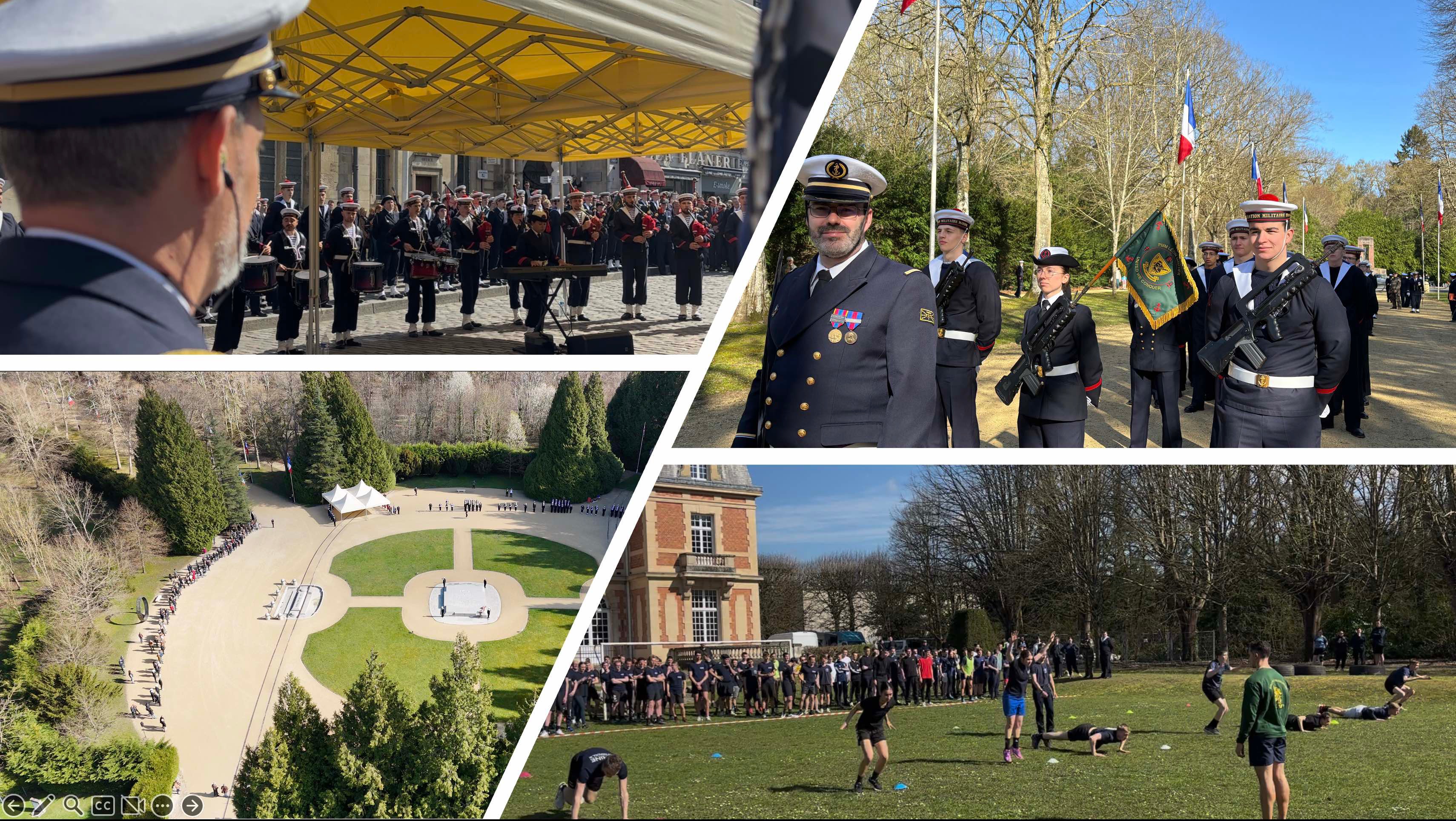 Après plus d’un an de préparation, et avec le soutien sans faille d’une municipalité attachée à la marine nationale, cette journée a commencé par une cérémonie commémorative en la Clairière de l’Armistice où près de 250 jeunes stagiaires étaient rassemblés face à la Dalle sacrée pour un dépôt de gerbes, un ravivage de la flamme et un moment de recueillement aux profit des marins morts pour la France. Aux côtés des jeunes stagiaires et de leurs encadrants, la cérémonie a également rassemblé les dispositifs départementaux du SDIS, de la gendarmerie et du service national universel (SNU) ainsi que de très nombreux porte-drapeaux et autorités.